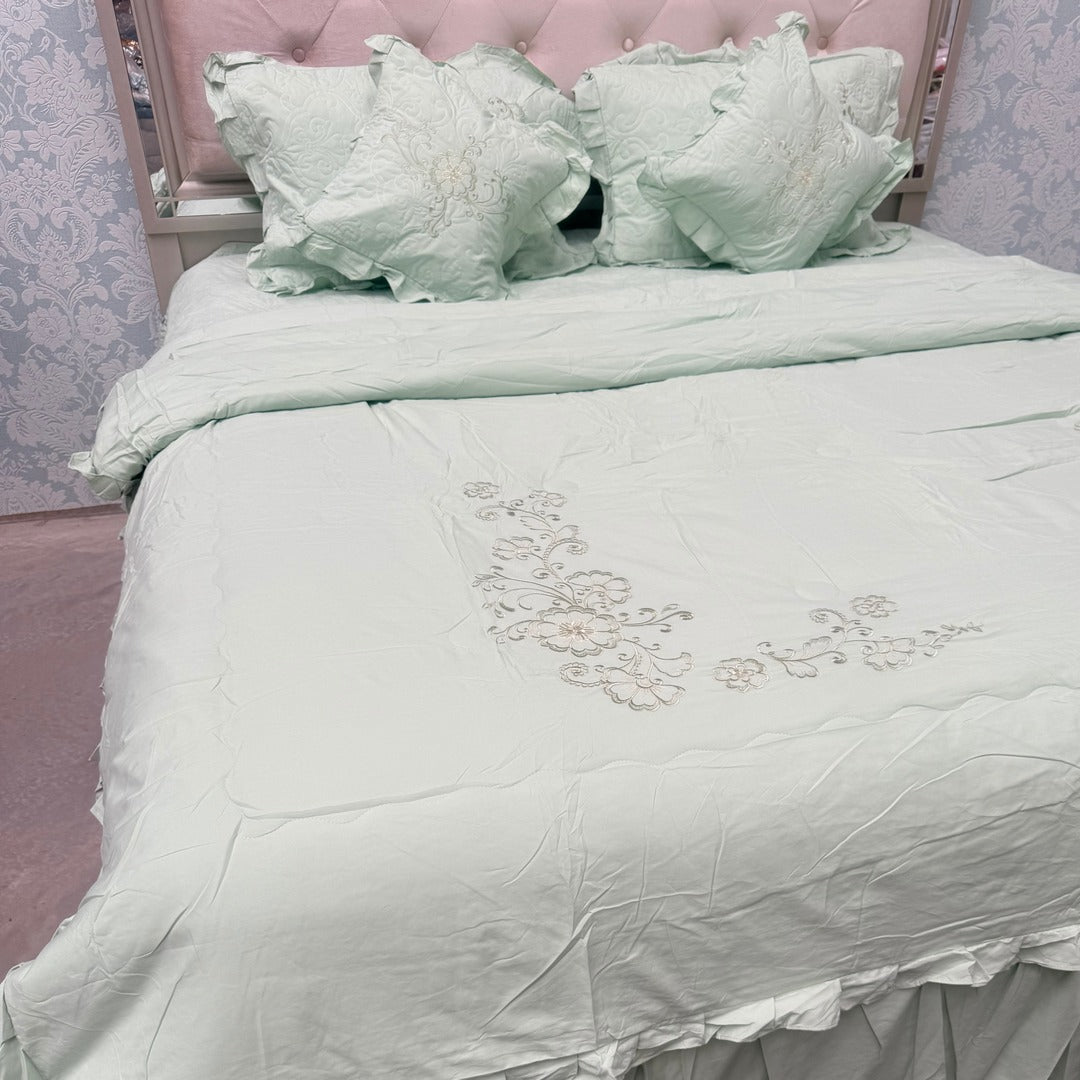 Designer Royal Look Embroidered Bedcover Set with Comforter and Quilted Accessories