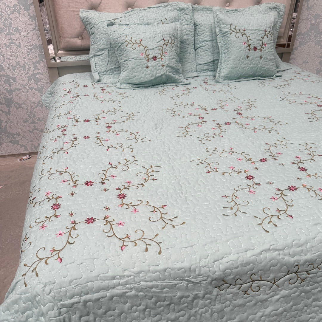 Elegant embroidery on both pillow and cushion covers