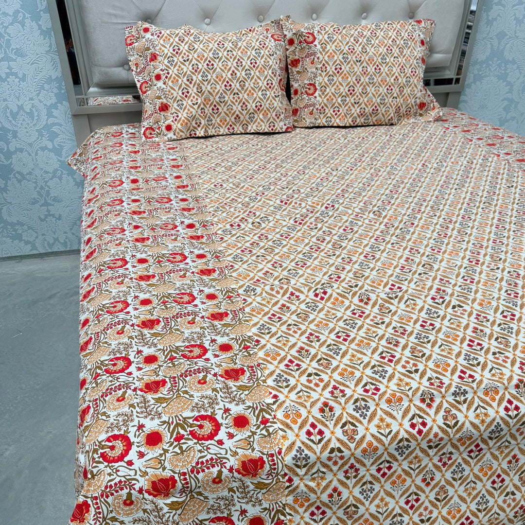 Bring the beauty of Rajasthan into your home with this beautiful Jaipuri hand block print bed sheet set.