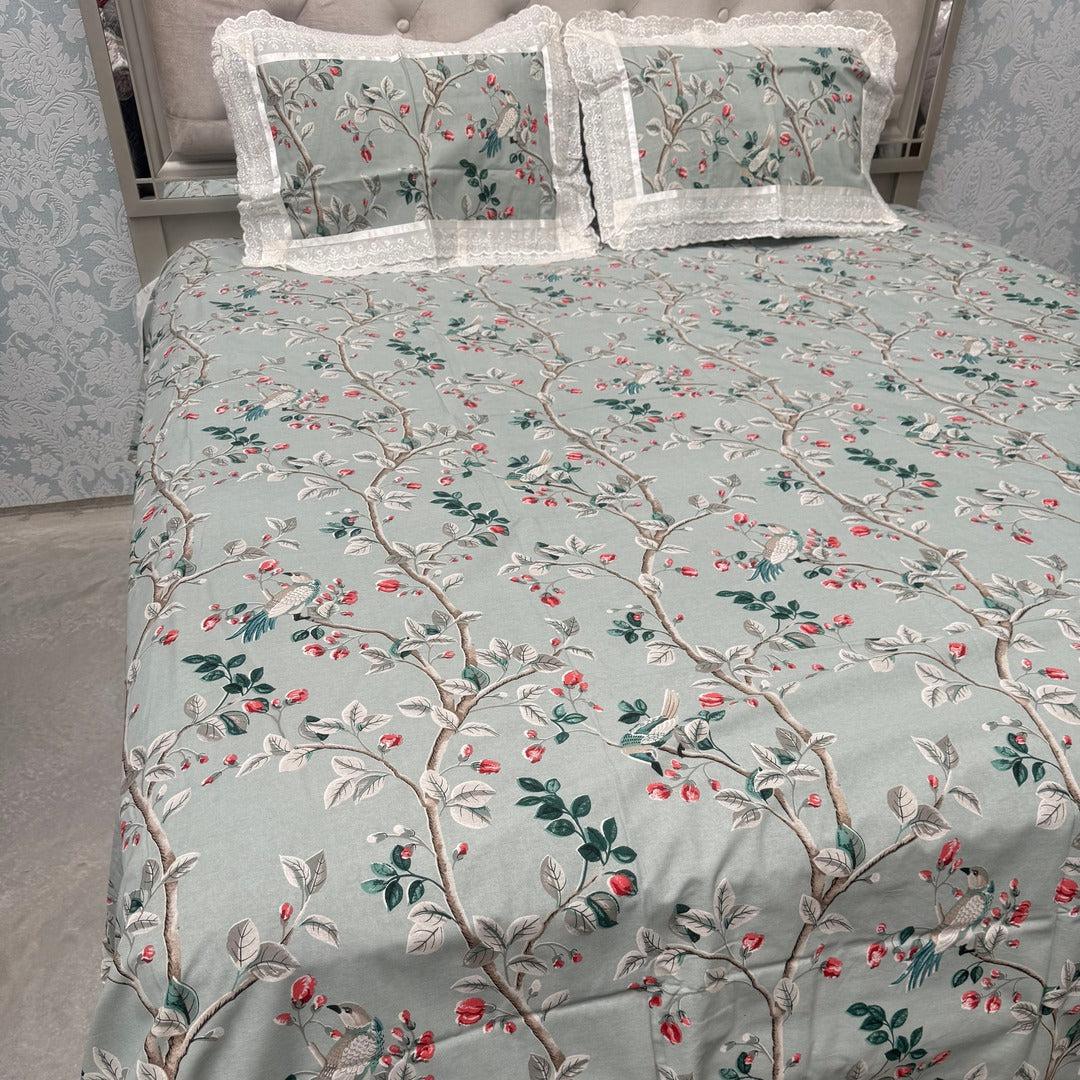 SUMMER JAIPURI STYLE PURE COTTON SUPER KING SIZE BEDSHEET SET WITH DOUBLE PLY CHICKEN KARI LACE ON PILLOW COVERS