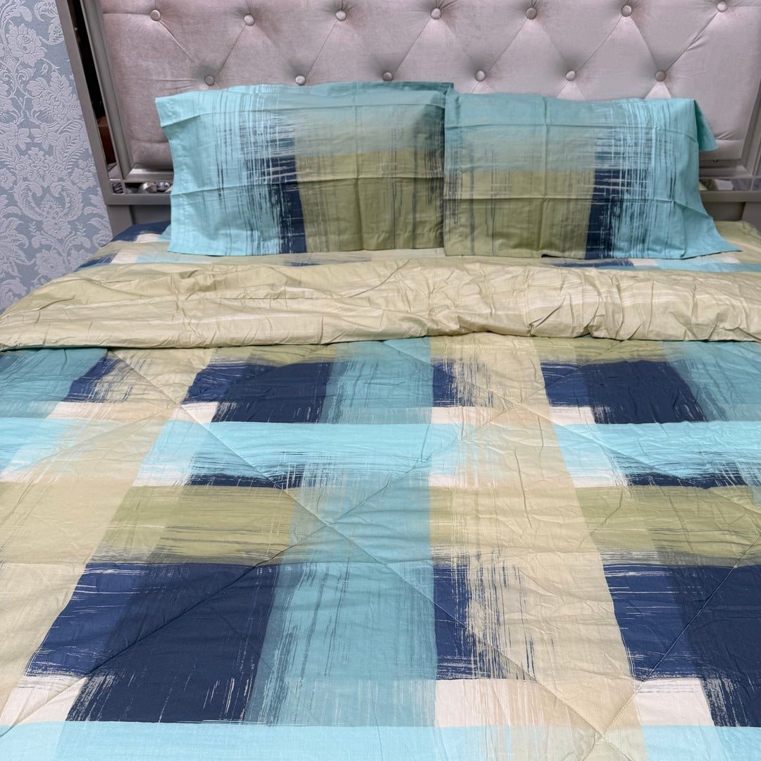 Elevate your bedroom aesthetics with our luxurious 4-piece King Size Comforter/AC Set, perfect for the summer months and the early winter chill. This versatile set includes a spacious flat bedsheet, a cozy comforter, and two matching pillow covers, ensuring both comfort and style.