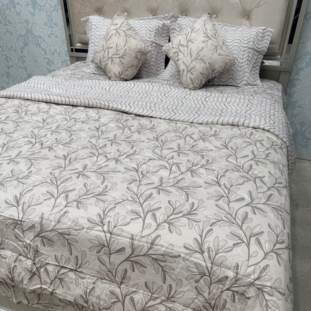 Add a touch of luxury to your bedroom with the pure Cotton Designer Comforter Set. Crafted for both comfort and style, this set is perfect for the summer months and can also be used at the start of winter. The soft, breathable fabric and fiber filling provide a cozy, relaxing experience every night.