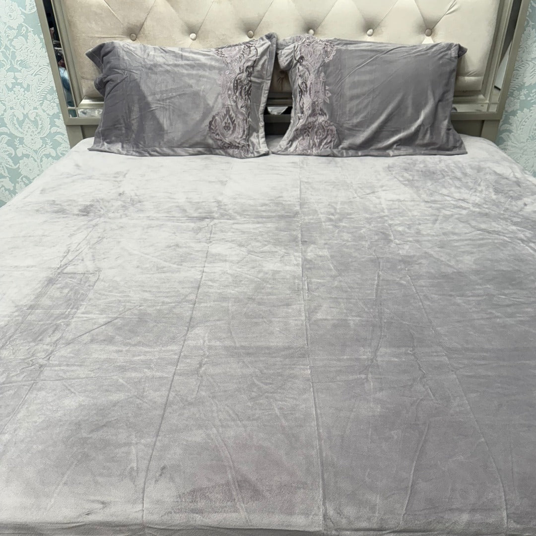 Transforme your bedroom into a cozy retreat this winter with our luxurious 3-piece bed sheet set. Featuring intricate embroidery, this set adds a touch of elegance and warmth to your space. Crafted for comfort, the bed sheet is made from high-quality materials, offering a soft and breathable feel for a restful night's sleep.